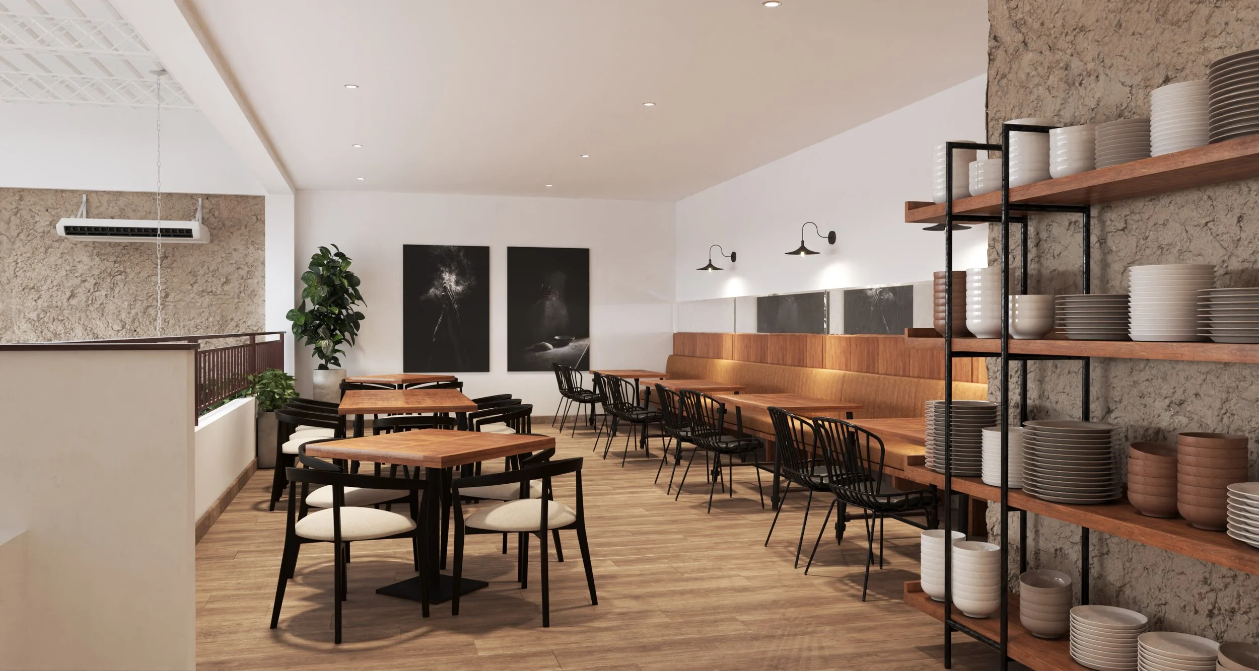 Esto se tradujo en el uso de acabados ricos en textura, materiales rústicos como el ladrillo tipo wash que rememoran su antaño, el uso de la madera cálida en tonos naturales que en su sencillez brindan protagonismo al producto, sumado a un conjunto armónico de mobiliario de líneas limpias combinado con clásicos.