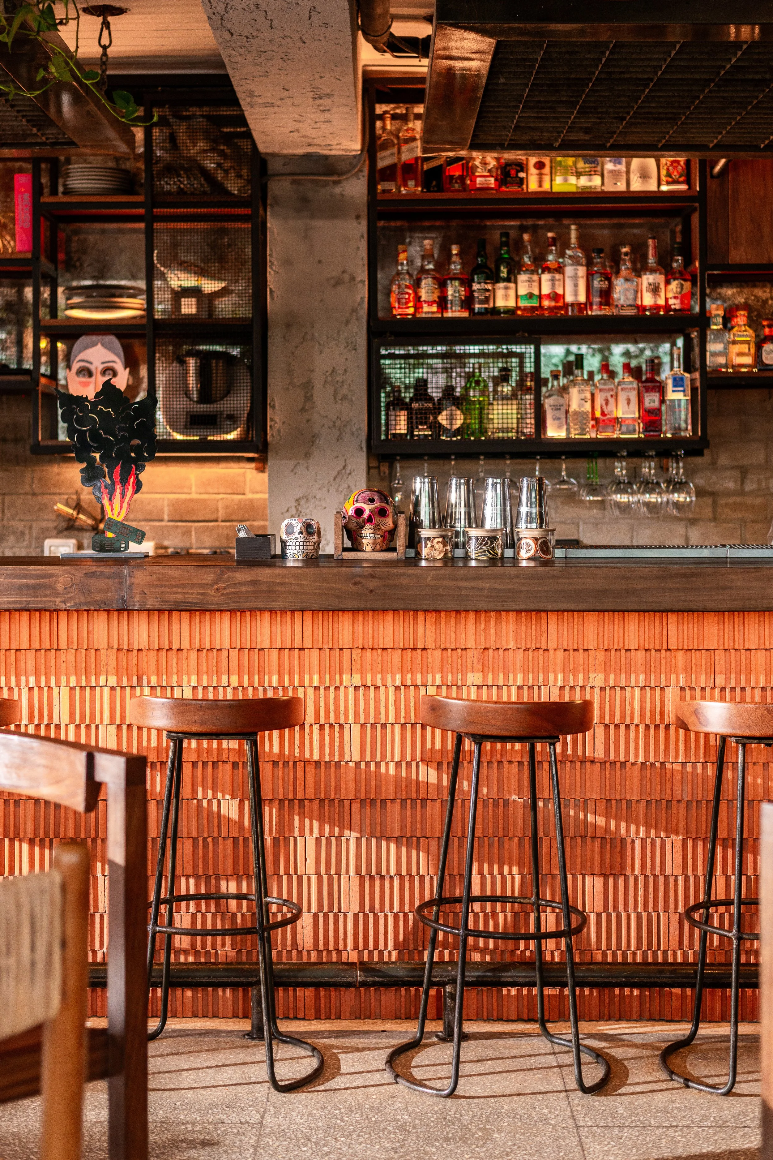 Apoyándonos en su propuesta gastronómica interesante, que muestra la influencia de los diversos viajes del chef Moma Adrianzén donde mezcla comida mexicana, con influencias del sudeste asiatico, y la peruana; nos dimos la licencia de combinar diversos materiales como el ladrillo de arcilla expuesto, concreto armado, fierro, fibra naturales, madera natural y por qué no también tinturada, diversos modelos de sillas, plantas. Donde a pesar de la diversidad, todo está en equilibrio.